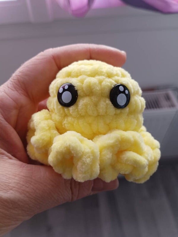 Réalisé au crochet, porte clé poulpe jaune